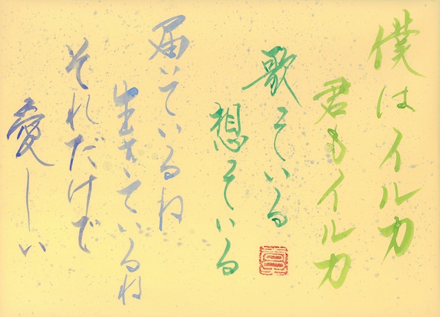 ◆作品情報◆ 筆文字 Aju 「イルカ」アマイオクスリ 筆文字アート B4 20000 ◆展覧会情報◆ 『現代美術作家 Xmas 小品展 2025』 会期:2025年12月12日(金)〜12月14日(日) 会場:グランドニッコー東京台場 GALLERY21 ※本サイトに掲載されている画像および作品の著作権は、当社または原著作者に帰属します。 無断での複製・転載・改変等は固くお断りいたします。
